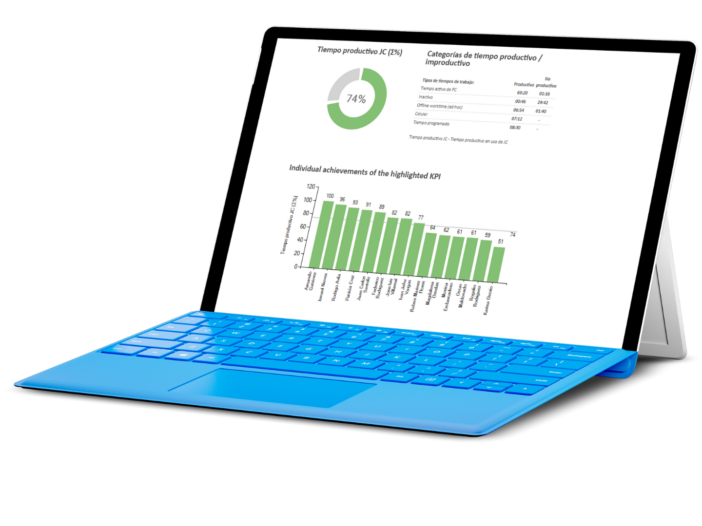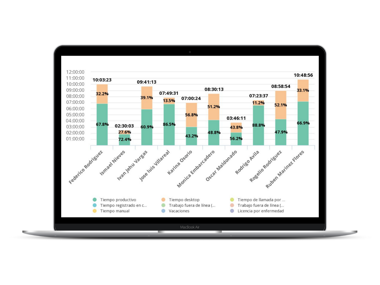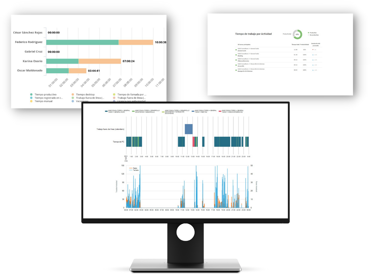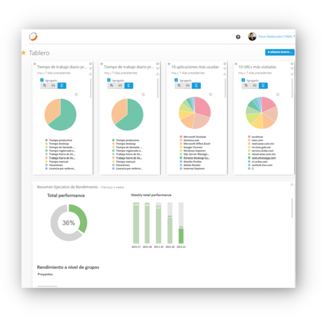 Tiempo de trabajo activo en la computadora de colaboradores. |