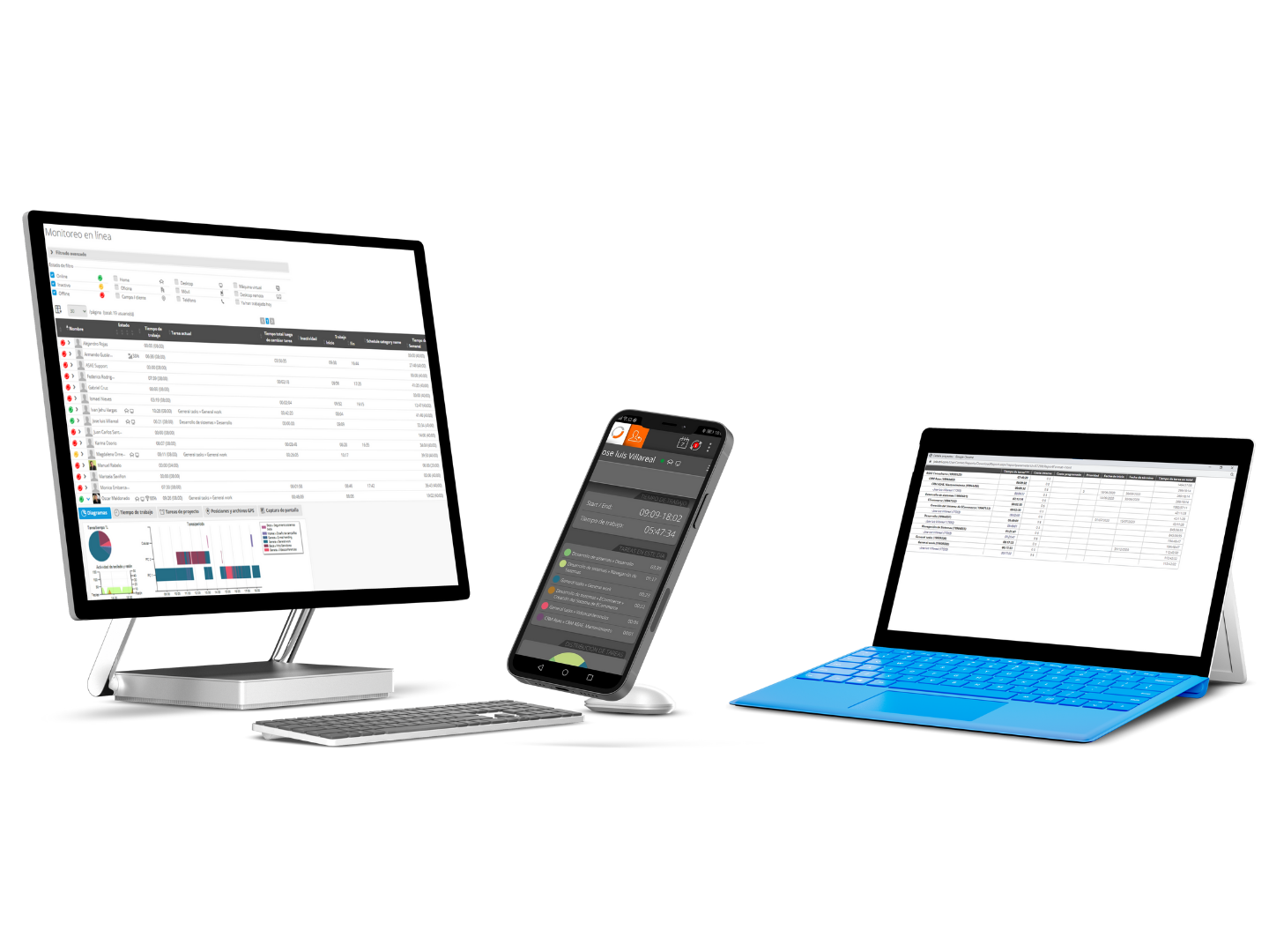 Monitoreo de tiempo de trabajo y pantallas. |