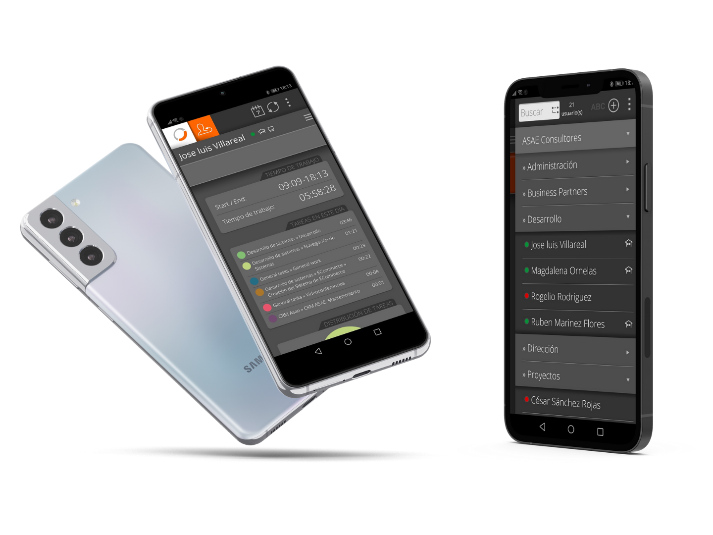 App Android & iOS Documenta llamadas de trabajo, uso de aplicaciones, duración de llamadas, trabajo de campo y tiempos de traslado; éstas se asignan automáticamente a tareas y clientes para un registro completo. |