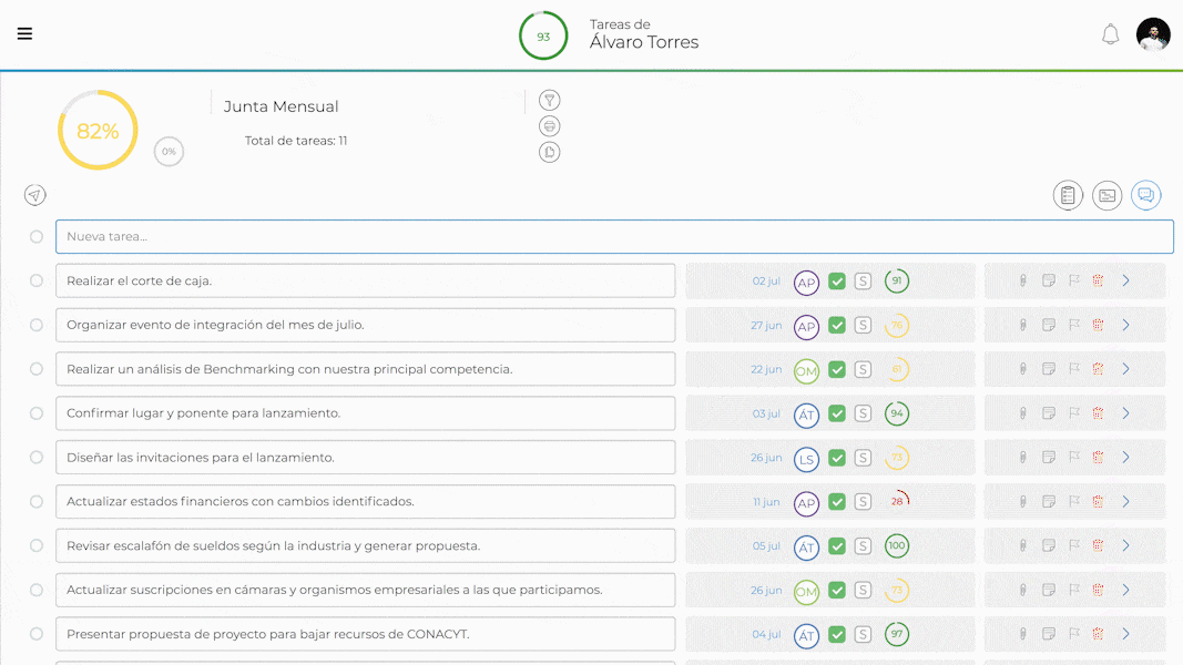 Crea tareas, define responsables, asigna fechas, adjunta documentos y prioriza actividades de